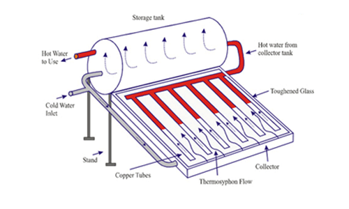 he most effective passive systems, which rely on gravity rather than power, are found in warm climes without nighttime or winters freezing. Some passive systems employ a thermosiphon setup that relies on convective and gravitational heat transfers. Gravity pulls cold water from a height down to the solar collector, where it runs through the collector and heats up before rising by convection to return to the storage tank. The integrated collector storage system is another kind of passive system. In this system, the collector serves as the tank’s top and heats the water there.